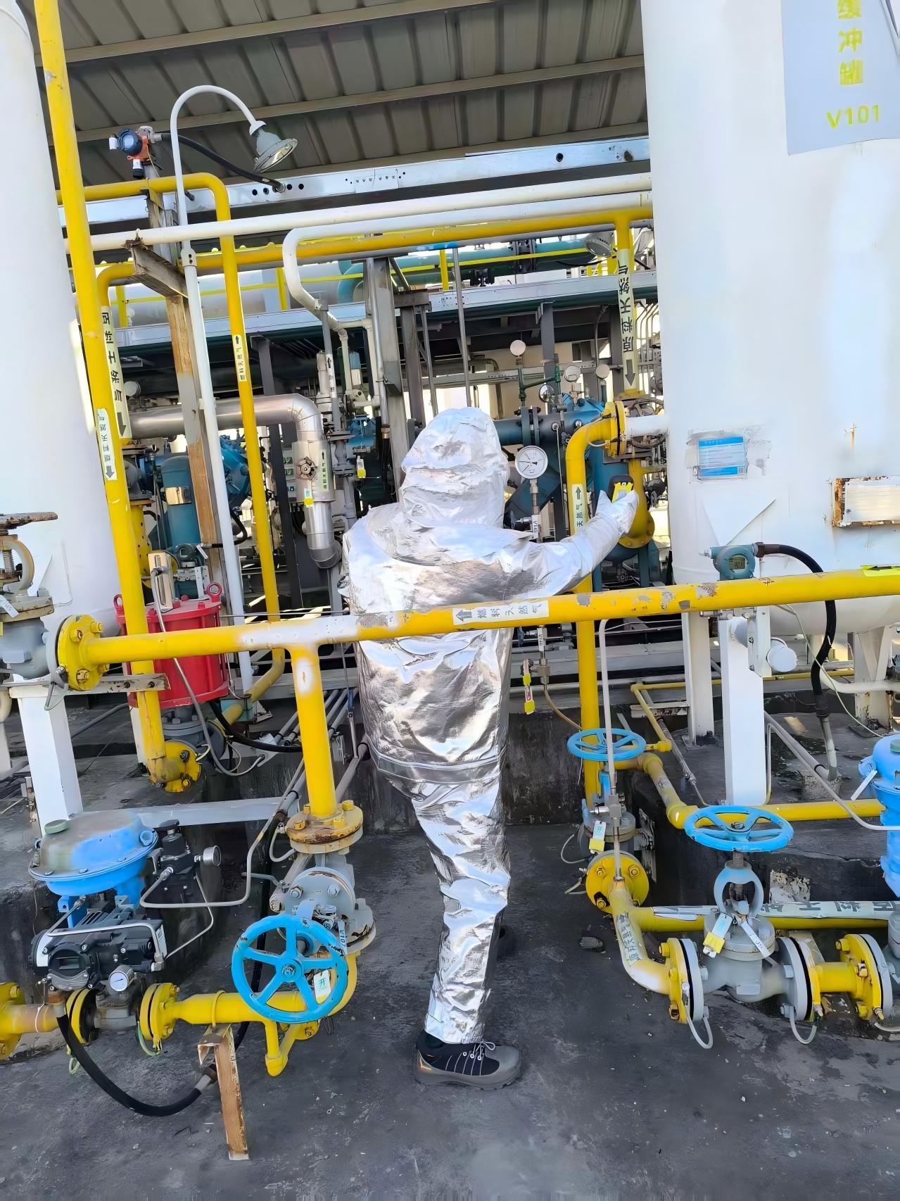 設(shè)備技術(shù)員孔朝輝更換原料氣緩沖罐法蘭墊片,并對(duì)泄露法蘭重新緊固。檢查泄漏緩沖罐過(guò)火情況、周邊設(shè)備損壞程度,向制氫站站長(zhǎng)李云建議:“受高溫影響,原料氣緩沖罐及周邊的管道需進(jìn)行壓力試驗(yàn),確認(rèn)安全后,方可重新開(kāi)機(jī)。”